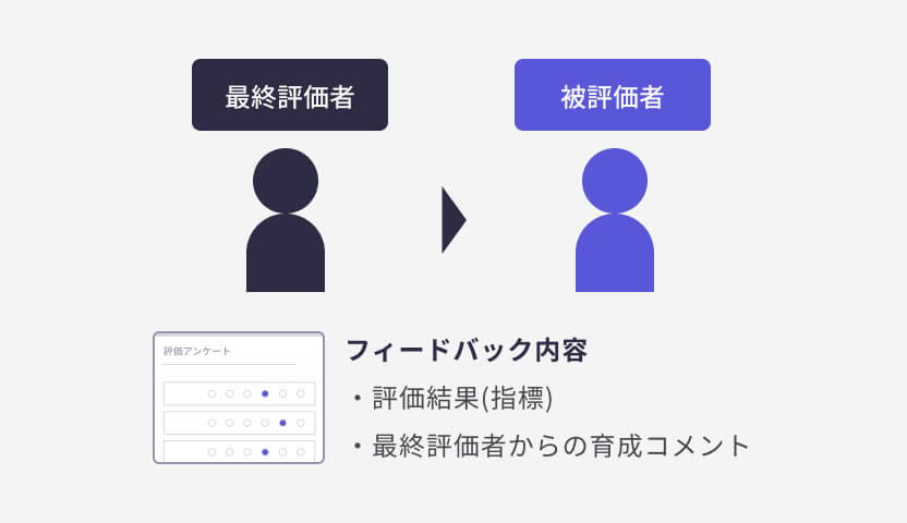 評価結果は指標化し、最終評価者からのコメントを添えて被評価者へフィードバックされます。
